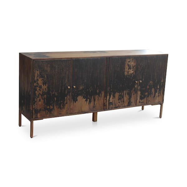 Reese Black Mango Wood 71 in. Sideboard with Iron Legs and Interior Shelves