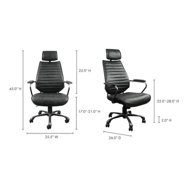 Rine Leather Adjustable Height Ergonomic Executive Swivel Chair in Black with Padded Arms