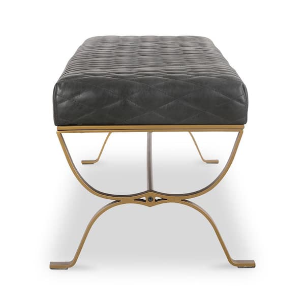 Ryan Black 58.5 in. Leather Bench with Iron Frame and Quilted Upholstery