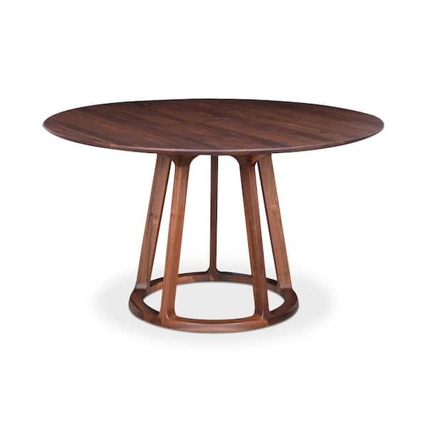 Verve Mid-Century Modern Brown Solid American Walnut Wood 47 in. Round Pedestal Dining Table, (Seats-6)