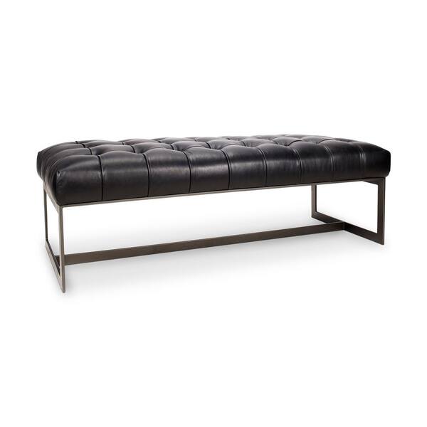 Zoey Black 54 in. Leather Bench with Iron Base and Eucalyptus Frame