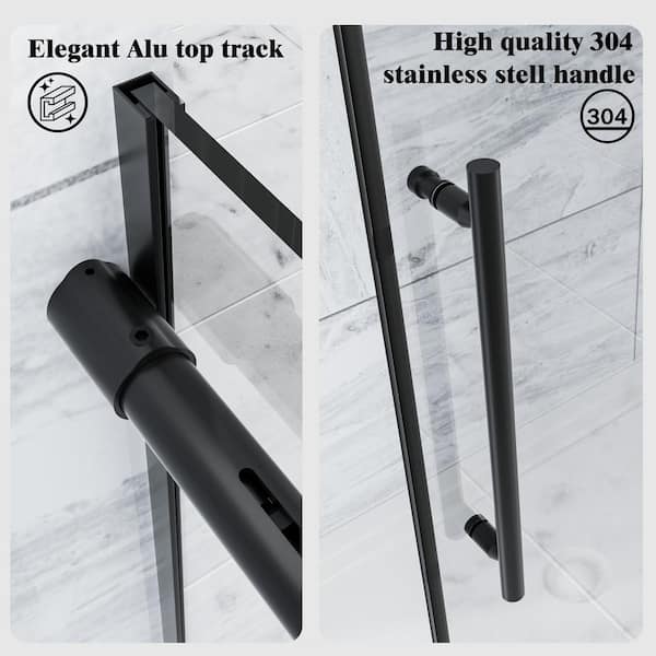 HAIMA 54 in. W x 74 in. H Single Sliding Frameless Shower Door in Matt Black with Clear 5/16 in. Glass