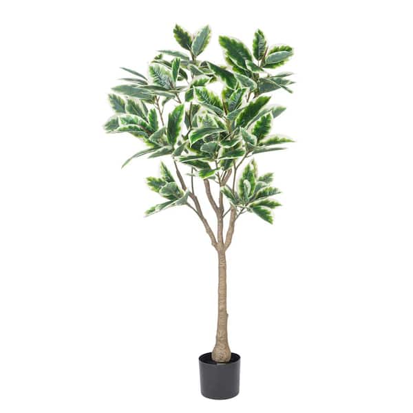 47 in. Green Artificial Weeping Fig Indoor and Outdoor in Black Pot