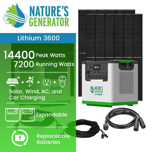 Lithium 7200W Continuous / 14400 Peak, 240V Solar Generator with 4 410W Solar Panels and 240V Combiner Box