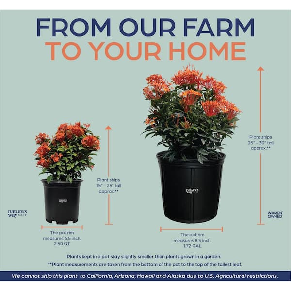 Ixora Taiwanese Orange Live Outdoor Plant in Growers Pot Avg Shipping Height 2 ft. to 3 ft. Tall