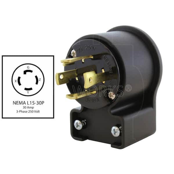 NEMA L15-30P 3-Phase 30 Amp 250-Volt Elbow 4-Prong Locking Male Plug with UL, C-UL Approval