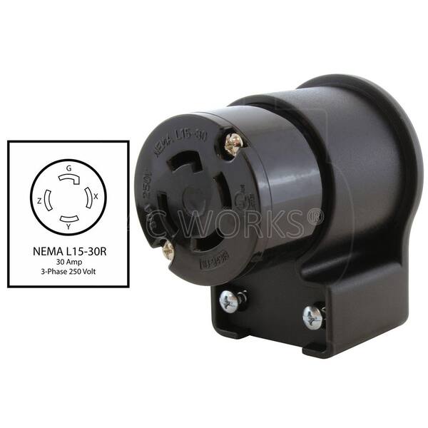 NEMA L15-30R 3-Phase 30 Amp 250-Volt Elbow 4-Prong Locking Female Connector with UL, C-UL Approval