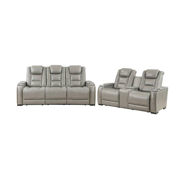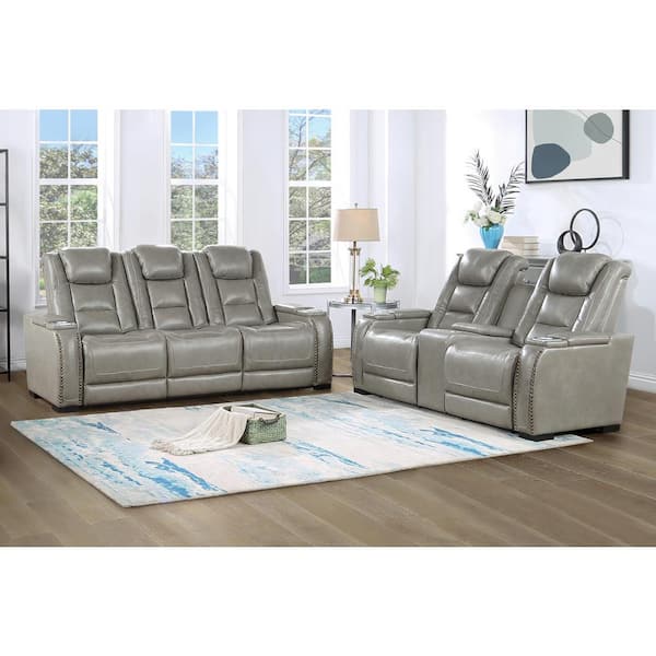 New Classic Furniture Breckenridge 2-Piece Light Gray Leather Power Living Room Set