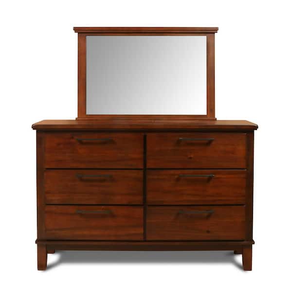 New Classic Furniture Cagney Wood Chestnut 6-Drawer 65 in. Dresser with Mirror