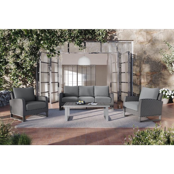 New Classic Furniture Fiji 4-Piece Wicker and Metal Patio Conversation Set with Gray Cushions