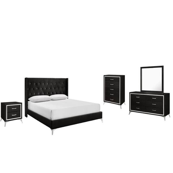 New Classic Furniture Huxley 5-Piece Black King Wood Bedroom Set (Bed, Dresser, Mirror, Nightstand, Chest)