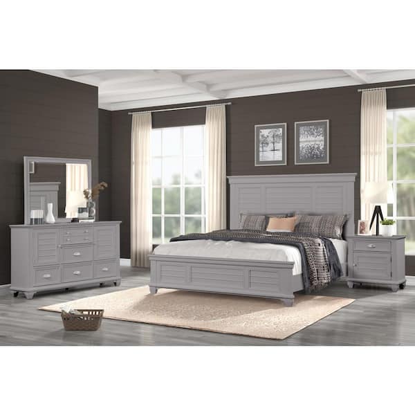 New Classic Furniture Jamestown 4-Piece Gray King Wood Bedroom Set (B/Dr/Mr/Ns)