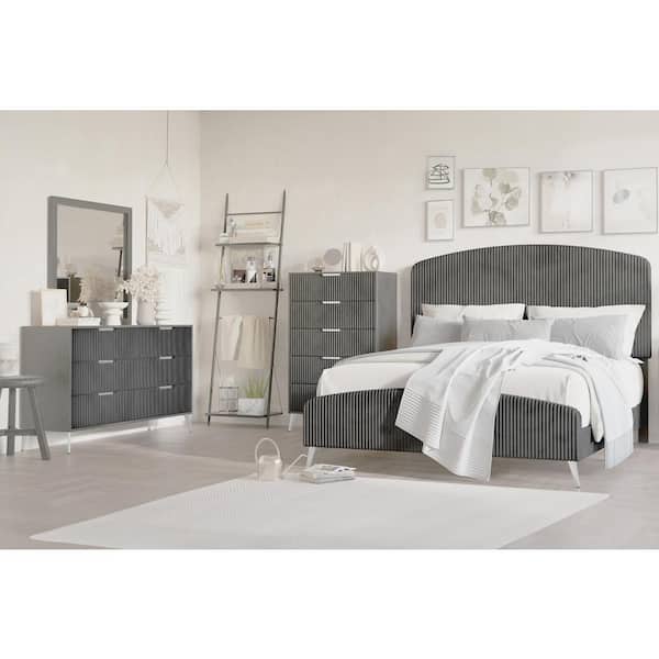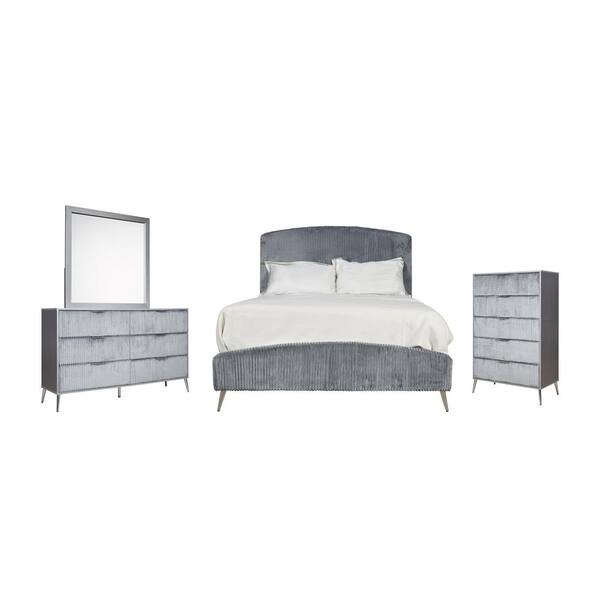 New Classic Furniture Kailani 4-Piece Gray California King Wood Bedroom Set (Bed, Dresser, Mirror, Chest)