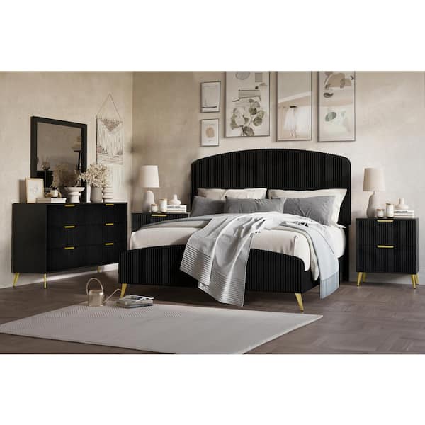 New Classic Furniture Kailani 5-Piece Black King Wood Bedroom Set (Bed, Dresser, Mirror, 2 Nightstands)