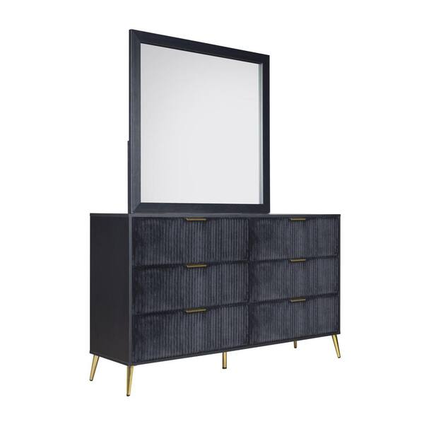 New Classic Furniture Kailani Wood Gray 6-Drawer 59 in. Dresser with Mirror