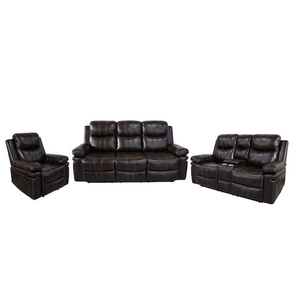 New Classic Furniture Kellen 3-piece Brown Faux Leather Power Footrest Living Room Set