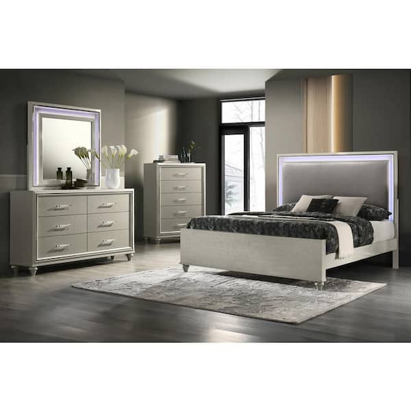 New Classic Furniture Lumina 4-Piece Gray California King Wood Bedroom Set (Bed/Dresser/Mirror/Chest)