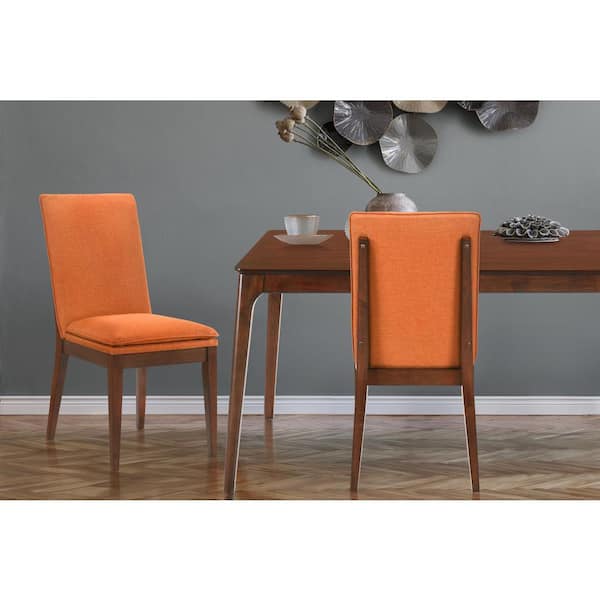 New Classic Furniture Maggie Brown Solid Wood Side Chair with Orange Polyester Seat (Set of 2)
