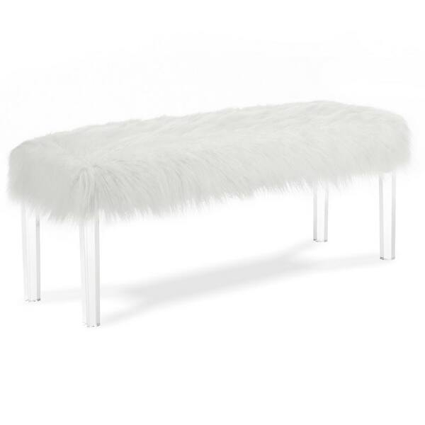 New Classic Furniture Marilyn White Glam Upholstered Bedroom Bench with Faux Fur