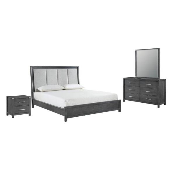 New Classic Furniture Odessa 4-Piece Charcoal King Wood Bedroom Set (Bed, Dresser, Mirror, Nightstand)