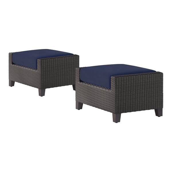 New Classic Furniture Skye Wicker Outdoor Ottoman with Blue Cushion (2-Pack)