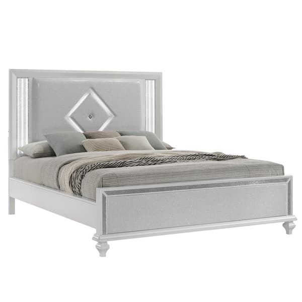 New Classic Furniture Stardust 4-Piece White King Wood Bedroom Set (Bed/Dresser/Mirror/Chest)