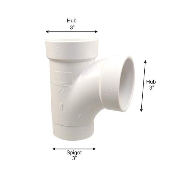 3 in. DWV PVC Spigot x Hub x Hub Sanitary Street Tee