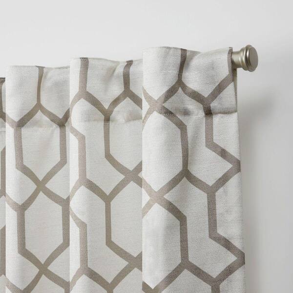 Hexa Natural Geometric Light Filtering Hidden Tab / Rod Pocket Curtain, 54 in. W x 96 in. L (Set of 2)