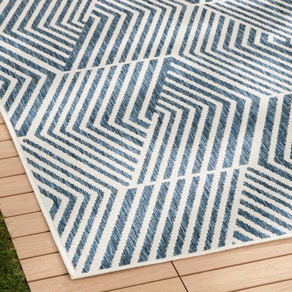 Patio Country Navy Blue/Cream 8 ft. x 10 ft. Ombre Geo Polypropylene Indoor/Outdoor Area Rug