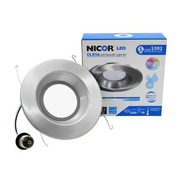 DLR Series 6 in. Nickel 1200 Lumens Integrated LED Downlight 3000K Retrofit Recessed Trim Kit, 93 CRI