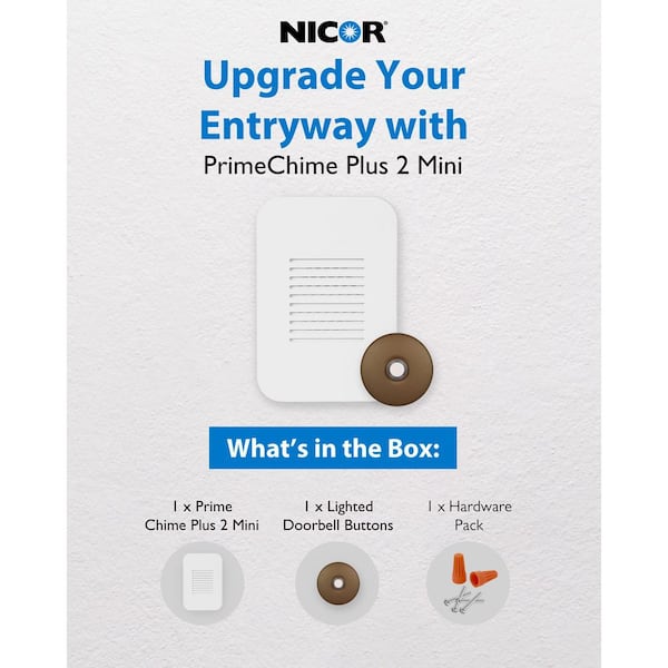 PrimeChime Plus 2 Mini Video Compatible Hardwired Door Bell Chime Kit with Architectural Bronze Stucco Button