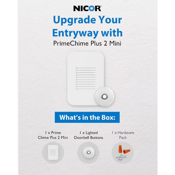 PrimeChime Plus 2 Mini Video Compatible Hardwired Door Bell Chime Kit with White Stucco Button