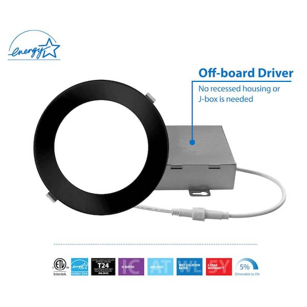 REL 6 in. Round 4000K Remodel IC-Rated Recessed Integrated LED Edge Lit Downlight Kit, Black