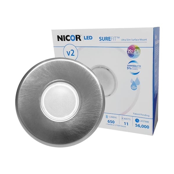 SureFit(v2) 5.2 in. Round Nickel Ultra Slim LED Flush Mount 3000K