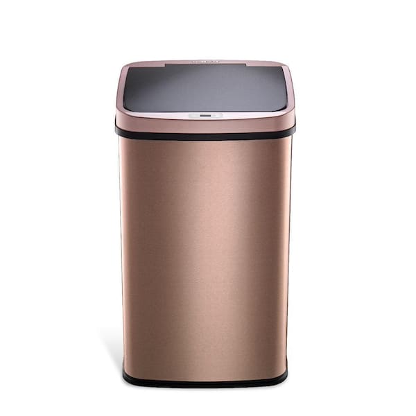 3 Gal. Gold Stainless Steel Rectangular Shape Motion Sensor Metal Household Trash Can