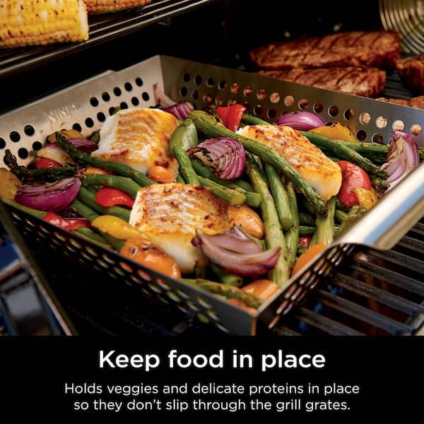 • Holds veggies and delicate proteins in place