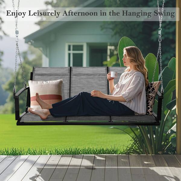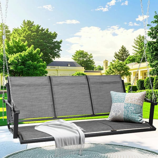 3-Seat Hanging Swing, 5.2 ft. Patio Bench Swing Outdoor Porch Swing with Hanging Chains