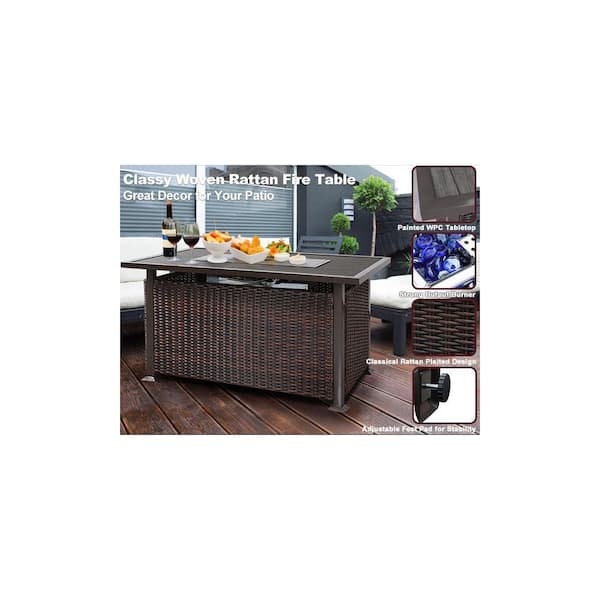 48 in. Propane Gas Fire Pit Table with Fabric Cover and Glass Beads, Brown