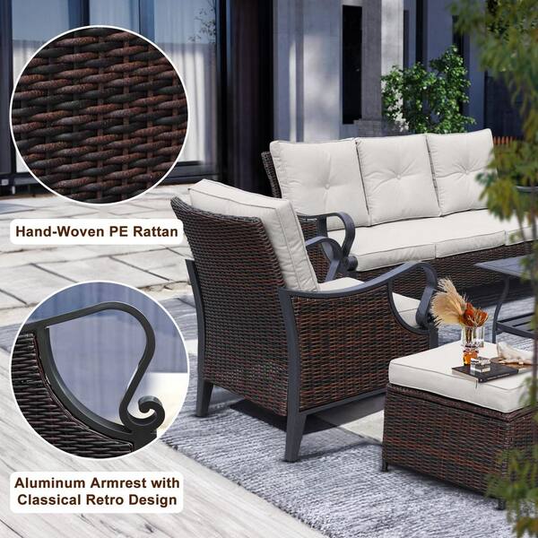 Residental Brown 6-Pieces Wicker Patio Outdoor Sectional Conversation Set with Grey Cushions