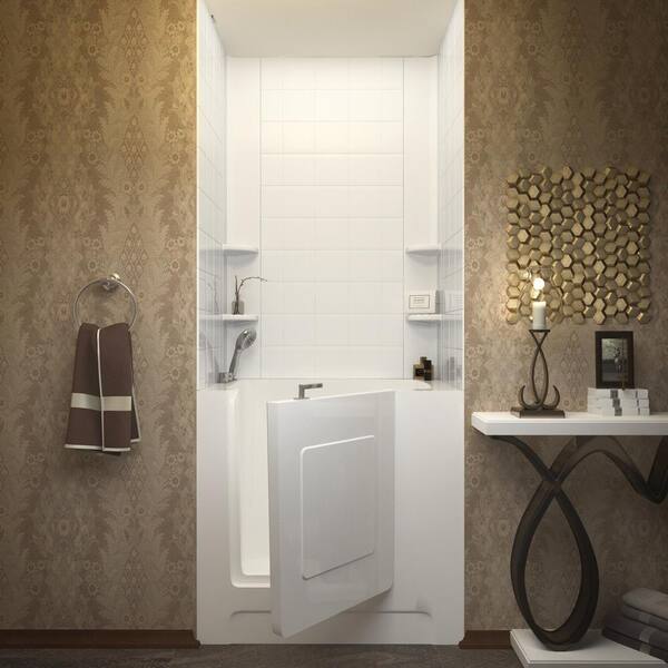 NOVA Heated Rampart 3.3 ft. Walk-in Non-Whirlpool Bathtub with 6 in. Tile Easy Up Adhesive Wall Surround in White
