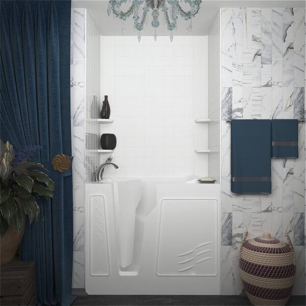NOVA Heated Rampart 3.9 ft. Walk-in Non-Whirlpool Bathtub with 4 in. Tile Easy Up Adhesive Wall Surround in White