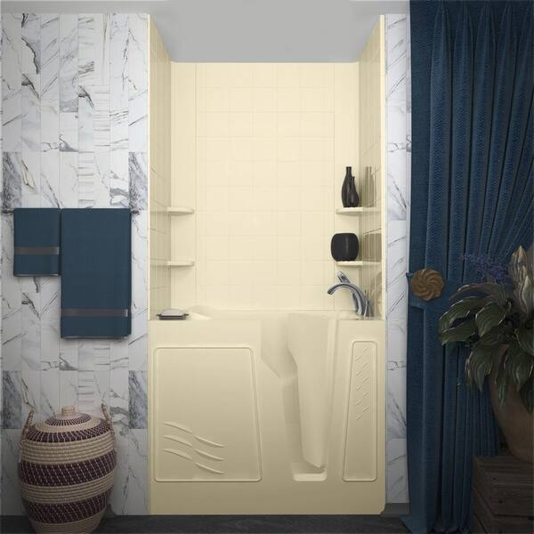 NOVA Heated Rampart 3.9 ft. Walk-in Non-Whirlpool Bathtub with 6 in. Tile Easy Up Adhesive Wall Surround in Biscuit