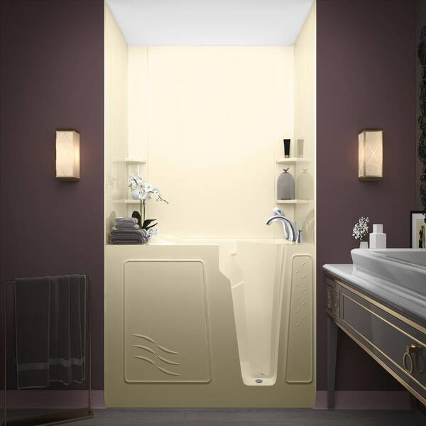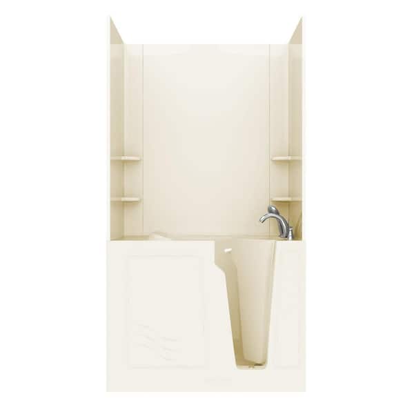 NOVA Heated Rampart 4.4 ft. Walk-in Non-Whirlpool Bathtub with Easy Up Adhesive Wall Surround in Biscuit