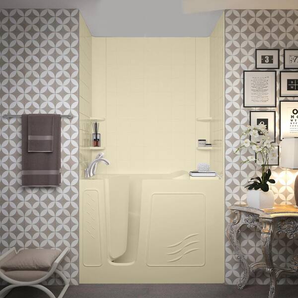 NOVA Heated Rampart 4.5 ft. Walk-in Non-Whirlpool Bathtub with 6 in. Tile Easy Up Adhesive Wall Surround in Biscuit