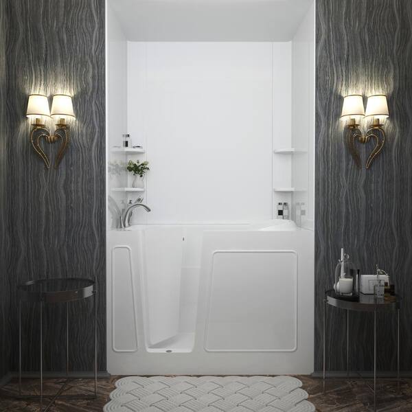 NOVA Heated Rampart 4.5 ft. Walk-in Non-Whirlpool Bathtub with Easy Up Adhesive Wall Surround in White