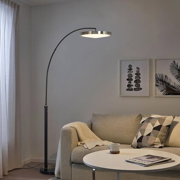 Redondo 85 in. Matte Black 1-Light Dimmable Arc Floor Lamp for Living Room with Steel Round Shade
