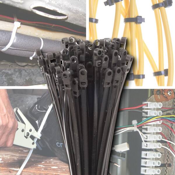7.5 in. Black Mountable Cable Tie, 50 Lb Tensile Strength (100-Pack)