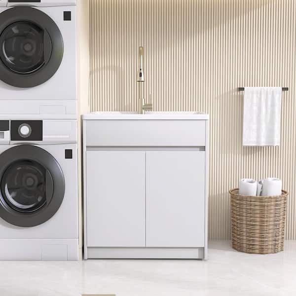 30 in. W x 22 in. D Solid Surface Drop-In Laundry/Utility Sink and Cabinet with Cold Hot Water Faucet and Drain in White