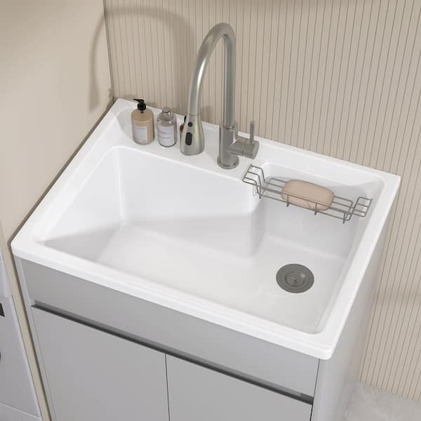 30 in. W x 22 in. D Solid Surface Drop-In Laundry/Utility Sink with Cold Hot Water Faucet and Drain in White