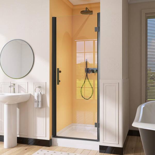 30 in. to 31.25 in. W x 72 in. H Right Hinged Frameless Pivot Swing Shower Door in Matte Black with Clear Glass Handle